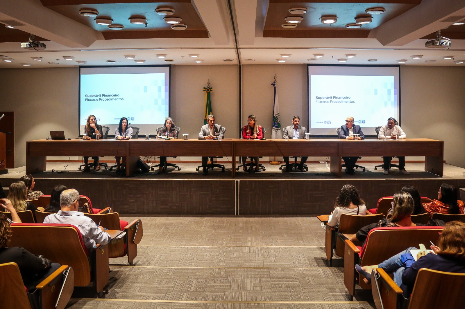 O evento contou com a participação de mais cerca de 250 servidores, técnicos que executam as tarefas de Orçamento (análise da solicitação do superávit financeiro; indicação das dotações orçamentárias a serem suplementadas; operacionalização do ato no SIPLAG); Financeiro (prestação de informações pertinentes aos recursos financeiros a serem alocados (contas bancárias); Contabilidade (contabilização dos registros no SIAFE-Rio 2); e controle Interno (elaboração do Parecer da Unidade de Controle Interno (ou setor equivalente).