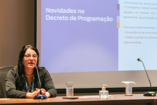 Em seguida a Subsecretaria Adjunta Monica Sousa detalhou as temáticas discutidas nacionalmente em razão da sua participação no Conselho Nacional de Secretários do Planejamento (Conseplan) que trazem para o nível estadual a inclusão de temas para novos processos de trabalho na gestão orçamentária e tratamento dos dados orçamentários a fim de aprimorar a qualidade do gasto público.